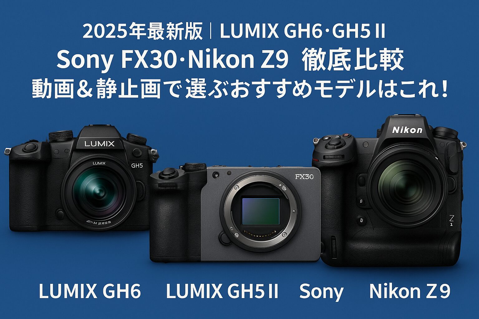 動画撮影に強いLUMIX GHシリーズ、シネマ志向のSony FX30、そしてフラッグシップのNikon Z9。どのモデルも個性が際立ちますが、用途や予算によって選び方は大きく変わります。本記事では、動画中心で選ぶべきか、静止画も重視するか、それぞれのモデルの強みと弱みを徹底比較。初心者~中級者でもわかりやすいように解説していきます。